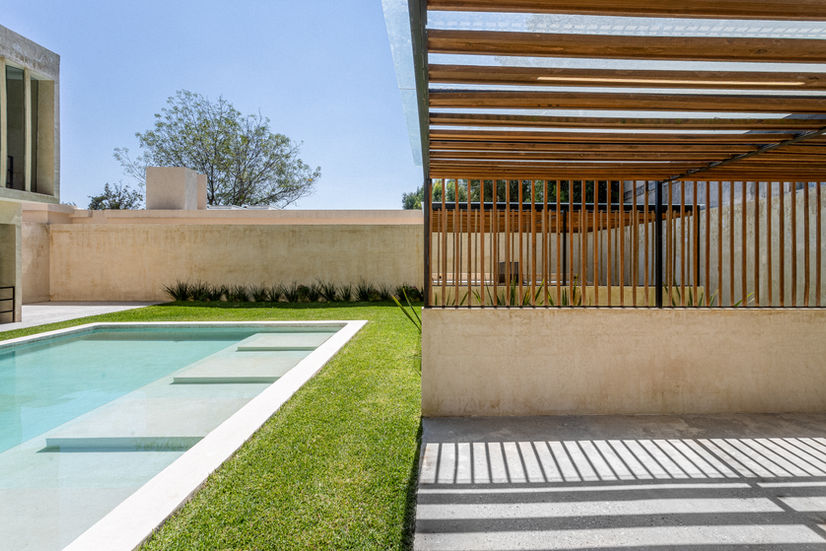 El fraccionamiento se organiza a partir de una arquitectura sólida y contemporánea, donde los accesos, las viviendas y las áreas comunes responden a una misma lógica espacial y material. Las casas se articulan mediante volúmenes claros y proporciones cuidadas, mientras que las amenidades y espacios exteriores —alberca, jardines y áreas de convivencia— funcionan como extensiones del ámbito doméstico, favoreciendo la vida al aire libre y la interacción social.